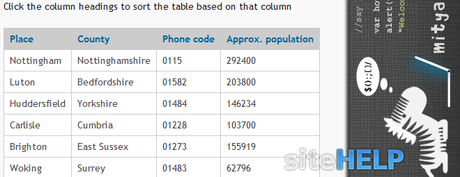 s fly to their new homes, giving a nice effect. It also supports sorting on REGEXP matches. You can also control whether row relationships are maintained, whether it sorts on ascii or numeric and ascending or descending.