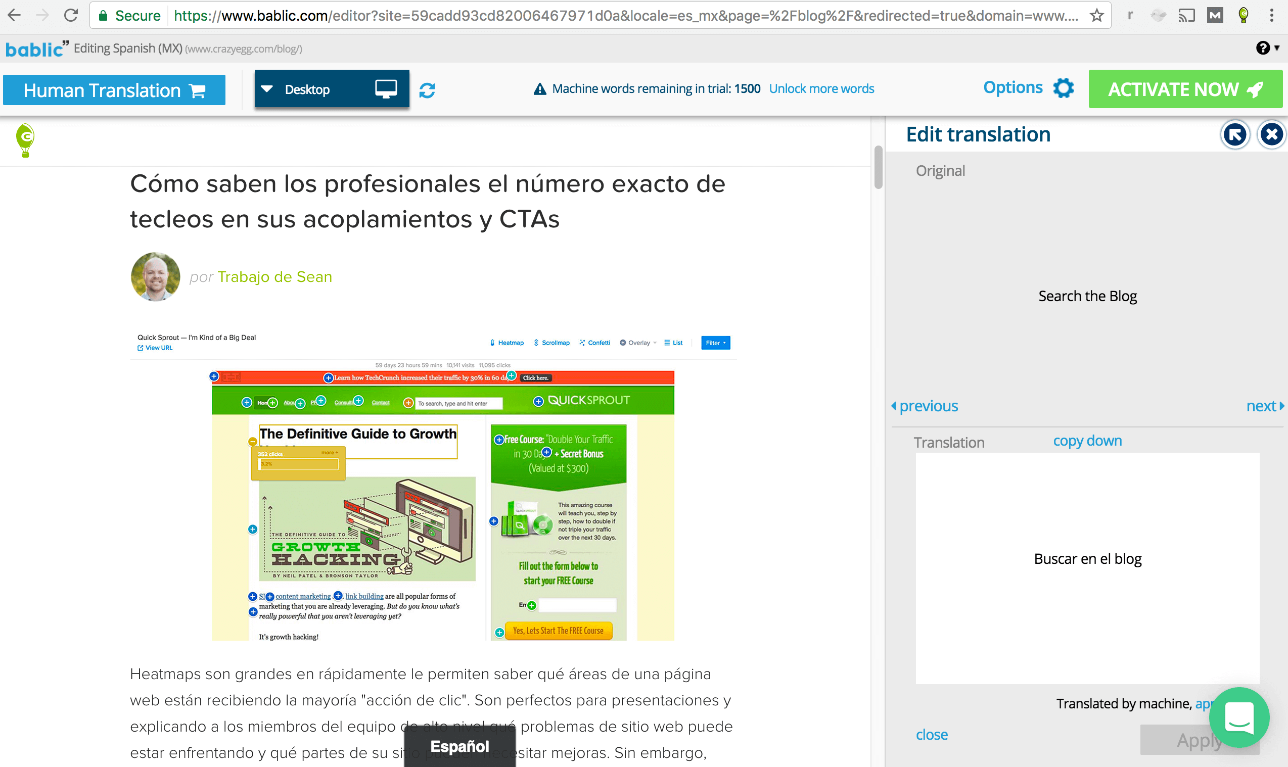 Moreover as you move from page to page, the smart engine pre-translates that page for you in the language you last chose. So it is versatile and fast.