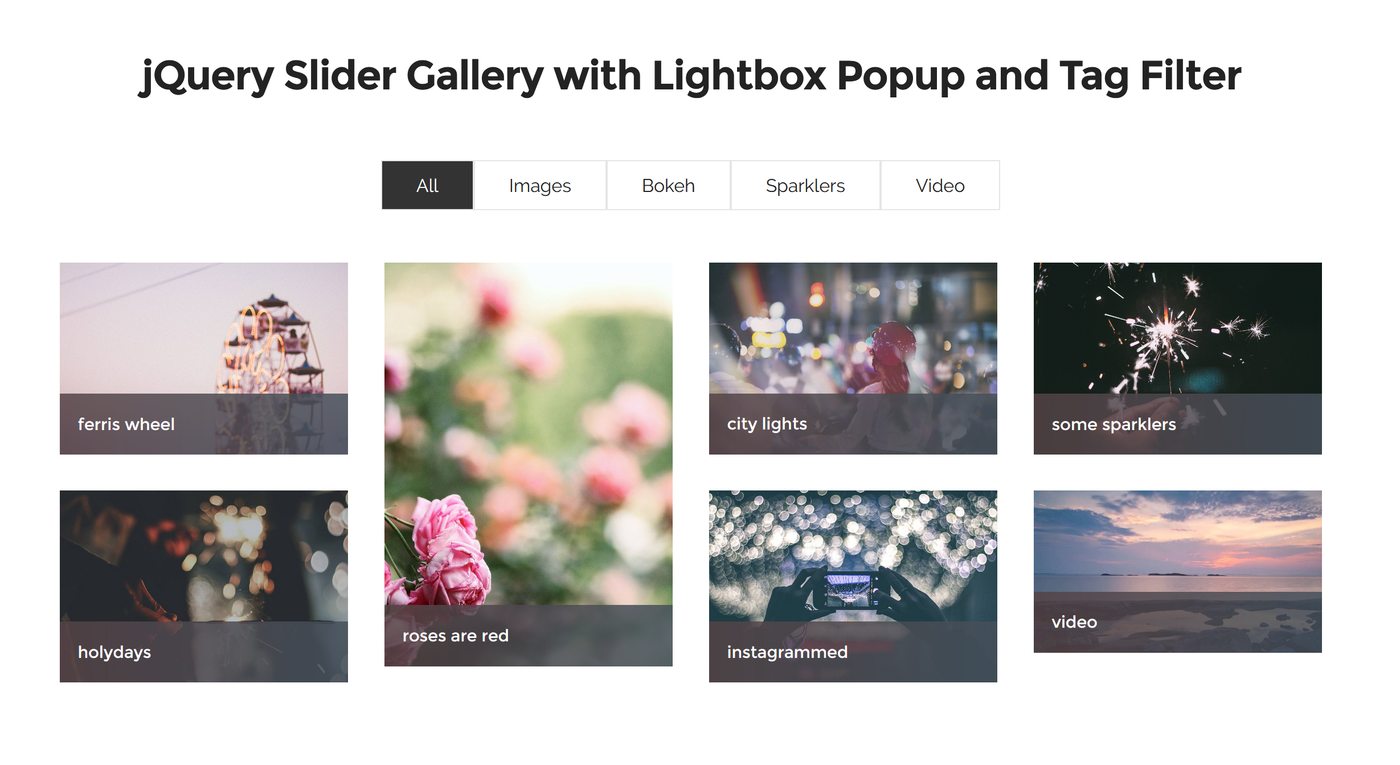This plugin works with minimal markup and is easy to instantly configure. The image that appears in the gallery window must be pointed at in the HREF attribute of each thumbnail. The thumbnail that is currently displayed will have an “active” class on it. You must configure most of the styles yourself, as there is minimal interference from the plugin.